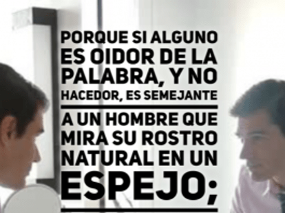 "Porque si alguno es oidor de la Palabra pero no hacedor de ella, este es semejante al hombre que considera en un espejo su rostro natural. Porque él se considera a sí mismo, y se va, y luego olvida cómo era". Santiago 1:23-24
