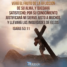 "Por Su conocimiento, el Justo, Mi Siervo, justificará a muchos, Y cargará las iniquidades de ellos". Isaías 53:11