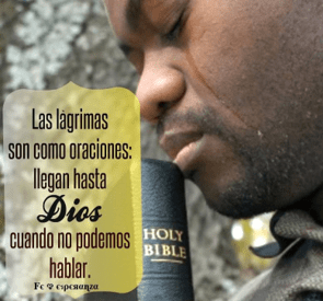 Las lágrimas son una especie de oraciones silenciosas que finalmente prevalecerán pidiendo misericordia. Cuando Ana lloró amargamente fuera del templo del Señor, Dios lo notó y se acordó de ella (1 Sam 1:10, 17). Cuando David se cansó de gemir, Dios no se cansó de escucharlo (Sal. 6:6–9). "He oído tu oración; he visto tus lágrimas," Isaías 38:5, dijo el SEÑOR a Ezequías en respuesta a su oración, cuando enfermó de gravedad y estaba a punto de morir, añadió 15 años a su vida. Mientras Jesús estuvo aquí en la tierra, ofreció oraciones y súplicas con gran clamor y lágrimas…” Heb. 5:7. Cada gota de agonía y sufrimiento desciende a la tierra como una semilla y espera brotar como un árbol de risas. “La lágrima que hoy desciende por mi mejilla, mañana será la joya que adornará la corona que gozoso pondré a Sus pies”. A.D.