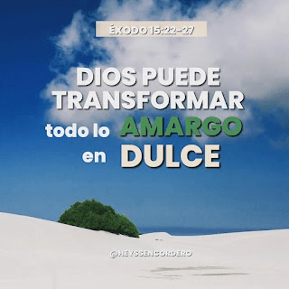 Las aguas de Mara eran amargas; Hay una razón por la cual las misericordias terrenales que suplen nuestras necesidades se tornan amargas, porque el sabor de la tierra que contienen nos hará recordar que somos extranjeros y peregrinos en el desierto de este mundo y que todo aquí es temporal y pasajero. Sin embargo, aprendemos más de Dios en Mara que en el oasis de Elim; porque nos revela el árbol de la Cruz. Fue allí donde nuestro SEÑOR entregó Su voluntad absolutamente al Padre. "Él llevó nuestros pecados en Su propio cuerpo sobre el madero, Heb.10:5. Ahora, para nosotros, sólo hay una manera de soportar el dolor y extraer su dulzura. Debemos entregar nuestra voluntad a Dios; debemos aceptar lo que Él permite; debemos hacer lo que Él manda. Así logramos saber que los desencuentros son Sus citas. -FB Meyer
