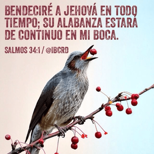 "Bendeciré al SEÑOR en todo tiempo; Continuamente estará Su alabanza en mi boca." Salmo 34:1