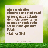 «Muy breve es la vida que me has dado; ante ti, mis años no son nada. ¡El ser humano es como un soplo!» Salmo 39:5