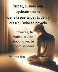 «Mas tú, cuando ores, entra en tu aposento, y cerrada la puerta, ora a tu Padre que está en secreto; y tu Padre que ve en lo secreto te recompensará en público». Mateo 6:6