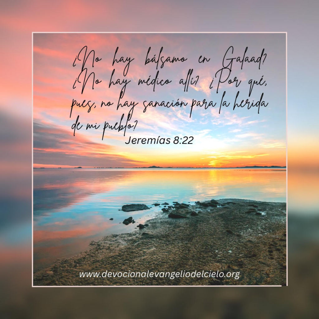 “¿No hay bálsamo en Galaad? ¿No hay médico allí? ¿Por qué, pues, no hay sanación para la herida de mi pueblo?” — Jeremías 8:22