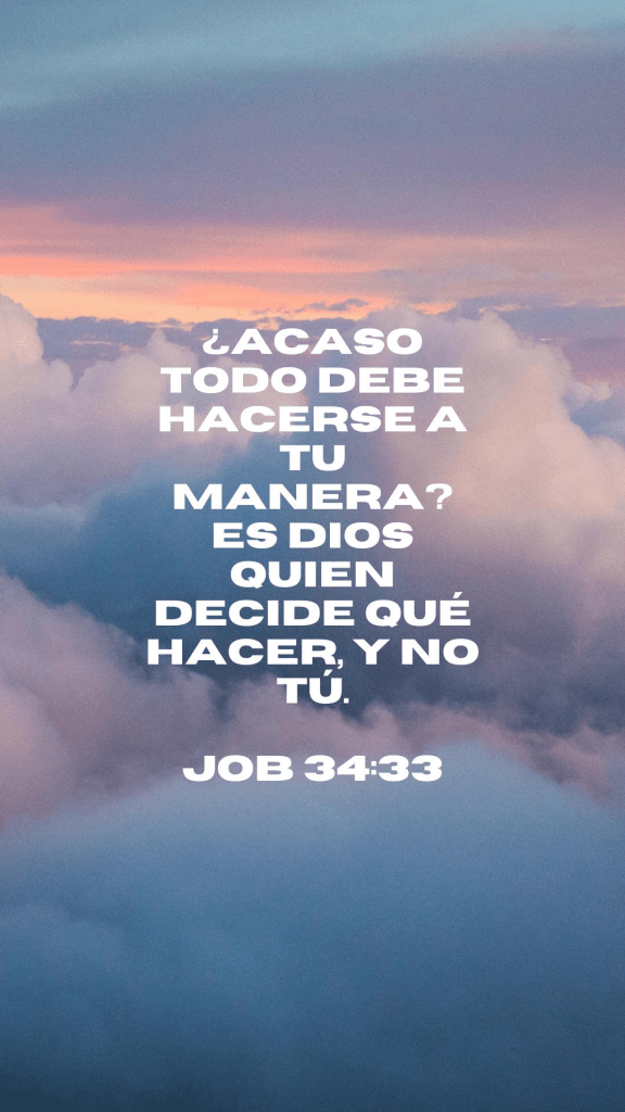«¿Acaso todo debe hacerse a tu manera? Es Dios quien decide qué hacer, y no tú.» — Job 34:33