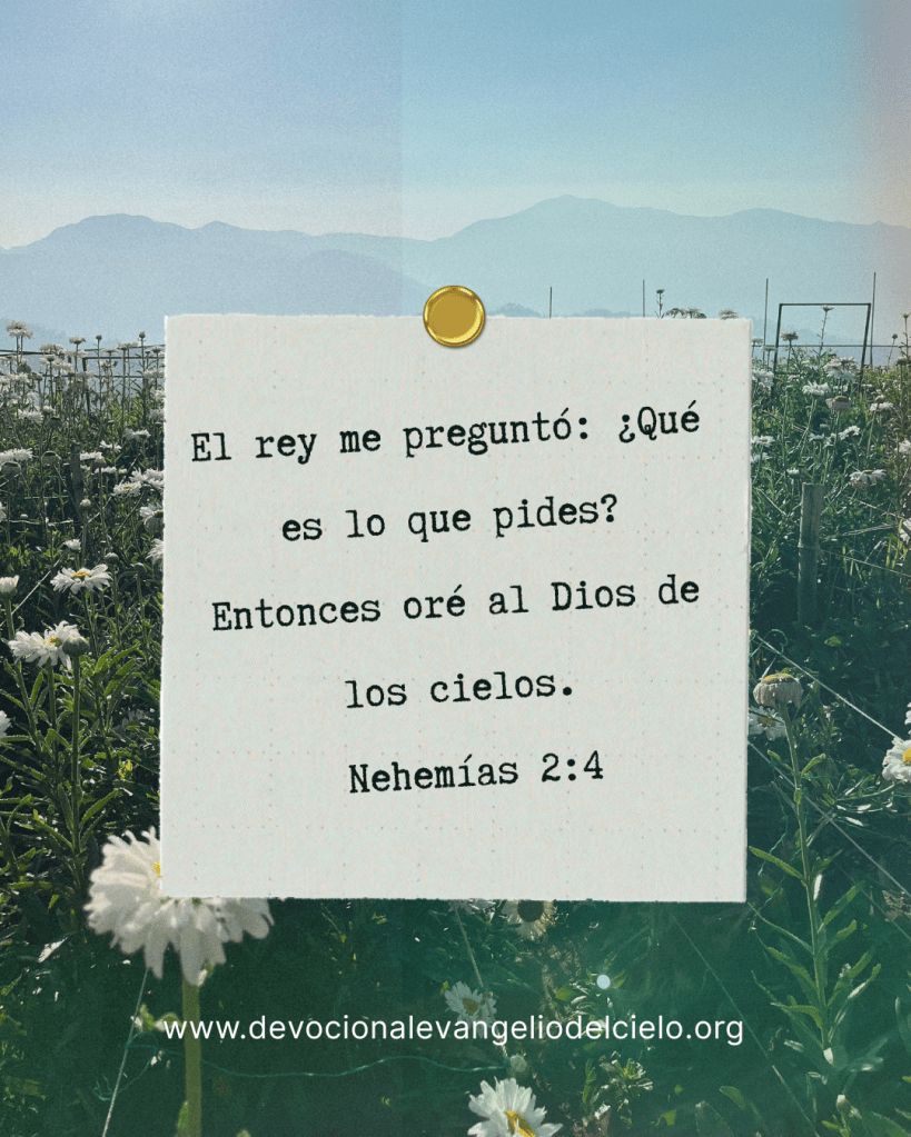 El rey me preguntó: ¿Qué es lo que pides? Entonces oré al Dios de los cielos. Nehemías 2:4