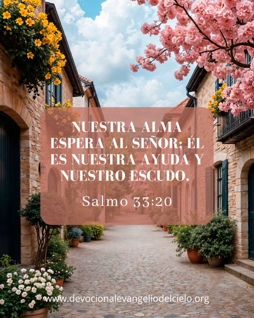 SEÑOR, enséñanos a esperar en ti con un corazón confiado y rendido. Cuando falten los apoyos humanos, sé tú nuestra ayuda y nuestro escudo, y afirma nuestra fe en la roca inconmovible de tu fidelidad. Amén.