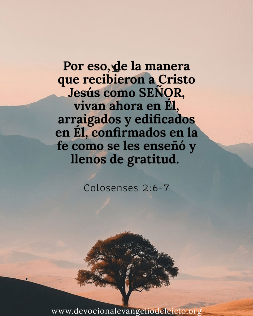 Por eso, de la manera que recibieron a Cristo Jesús como SEÑOR, vivan ahora en Él, arraigados y edificados en Él, confirmados en la fe como se les enseñó y llenos de gratitud. Colosenses 2:6, 7